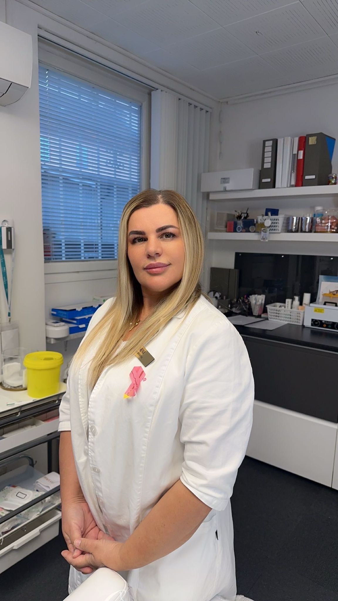 Nena kombinerar sin medicinska kunskap med ett personligt bemötande för att skapa en trygg och professionell miljö för sina patienter.